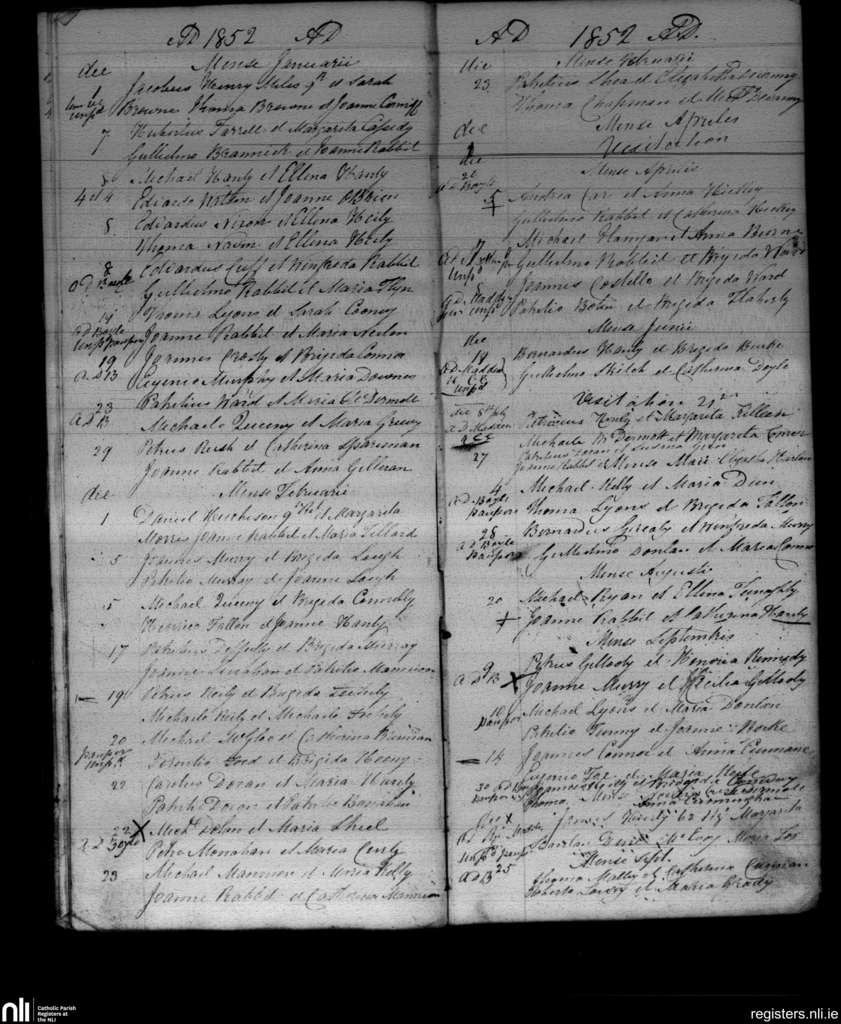 Roscommon and Kilteevan; County of Roscommon; Diocese of Elphin. Marriages, Jan. 1852 to Sep. 1852