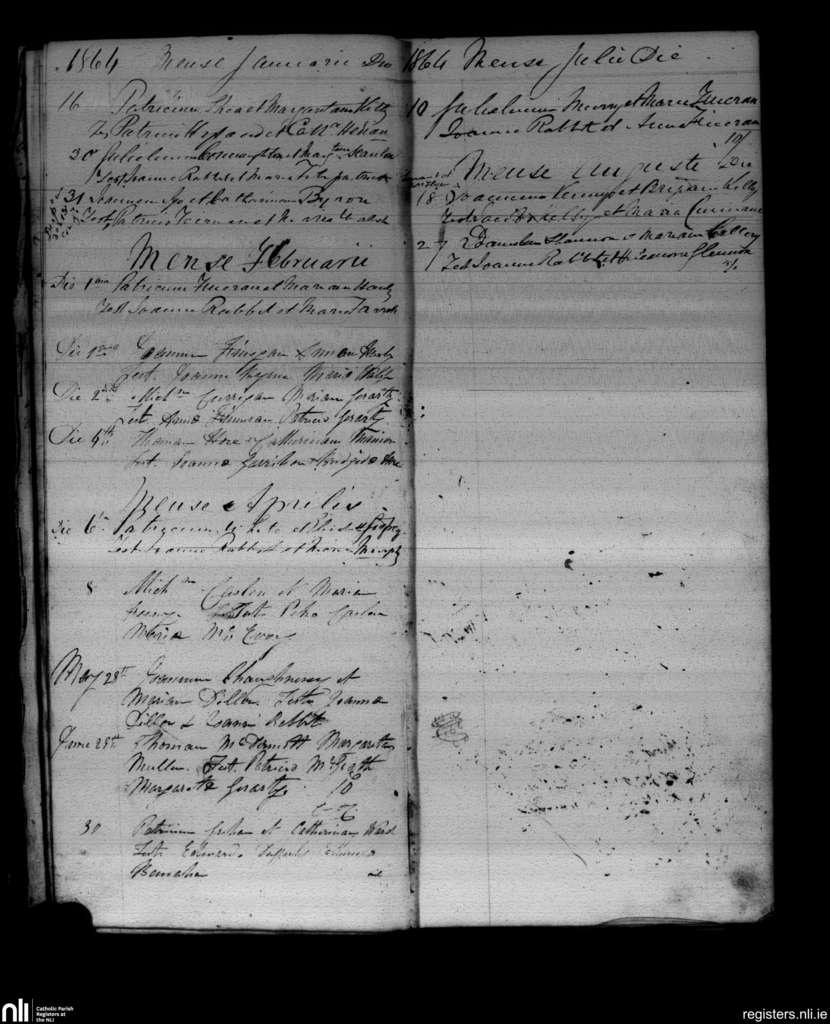 Roscommon and Kilteevan; County of Roscommon; Diocese of Elphin. Marriages, Jan. 1864 to Aug. 1864