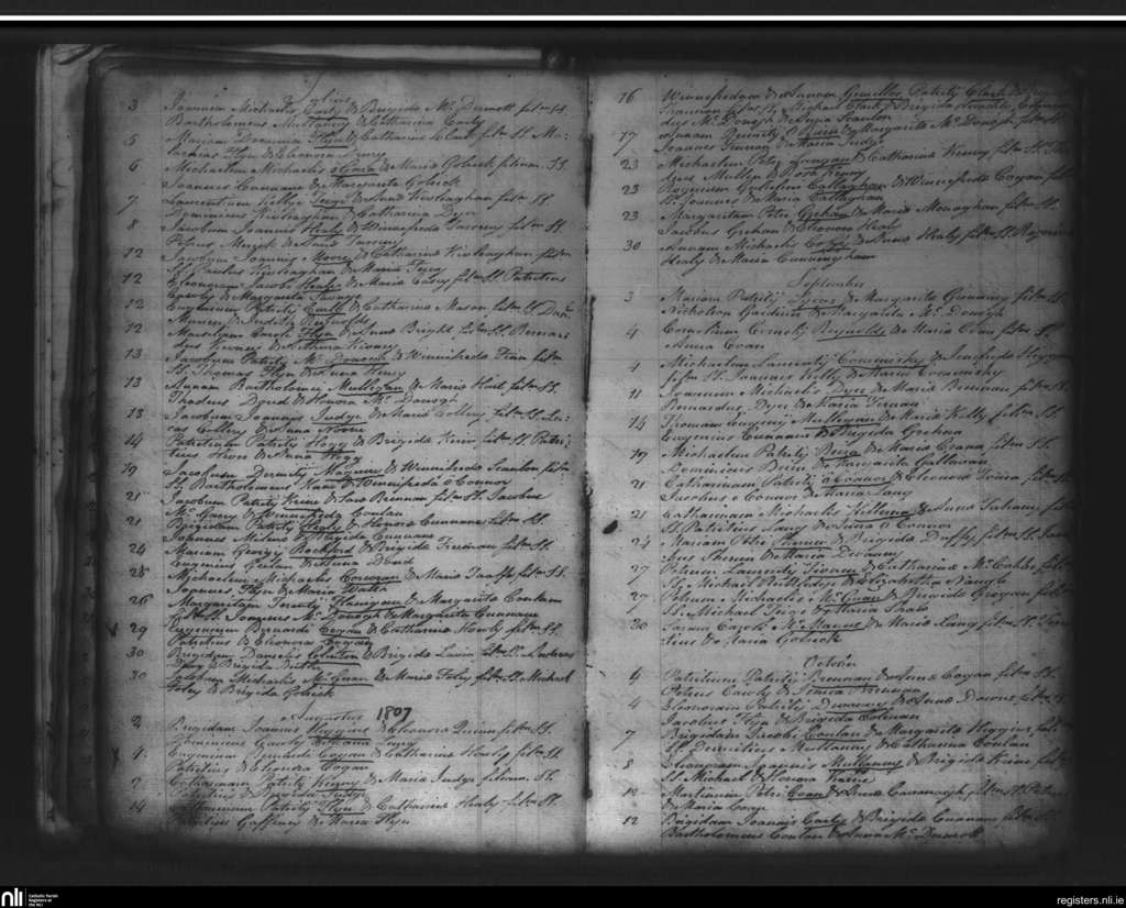 Taunagh; County of Sligo; Diocese of Elphin. Baptisms, July 1807 to Oct. 1807