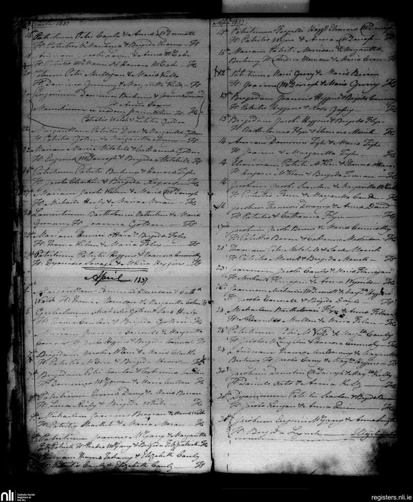 Taunagh; County of Sligo; Diocese of Elphin. Baptisms, Mar. 1837 to Apr. 1837