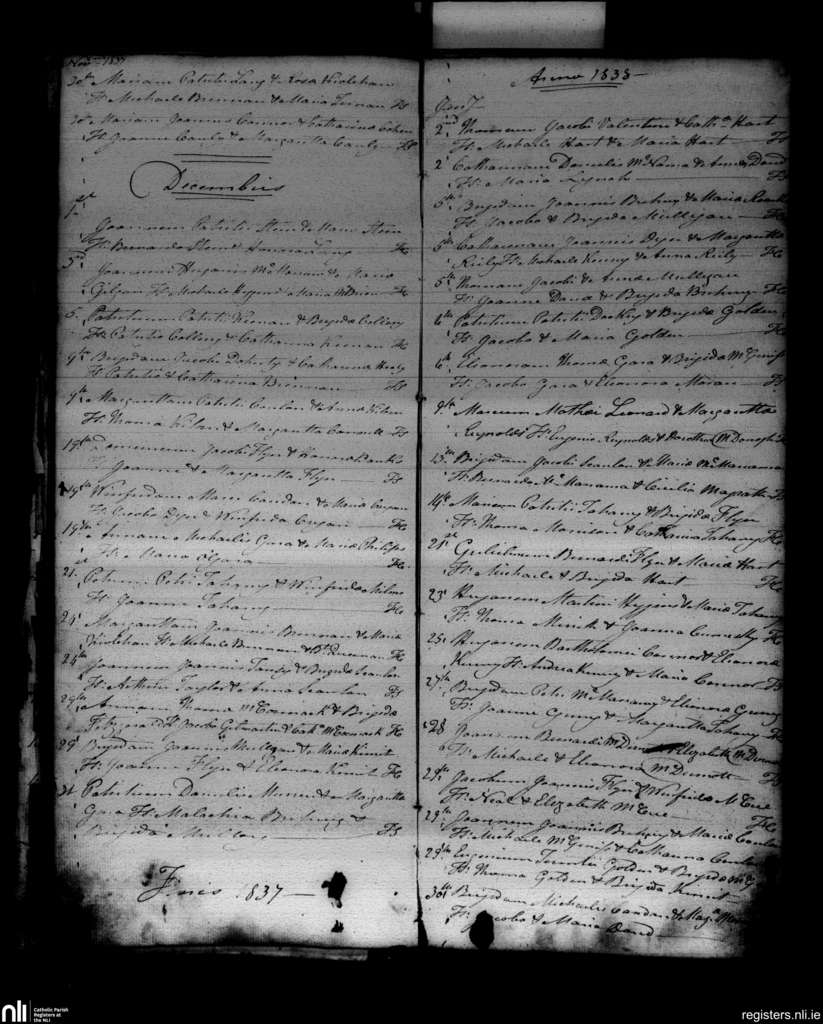 Taunagh; County of Sligo; Diocese of Elphin. Baptisms, Nov. 1837 to Jan. 1838
