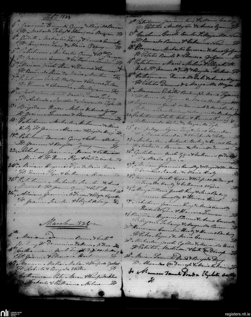Taunagh; County of Sligo; Diocese of Elphin. Baptisms, Feb. 1838 to Mar. 1838