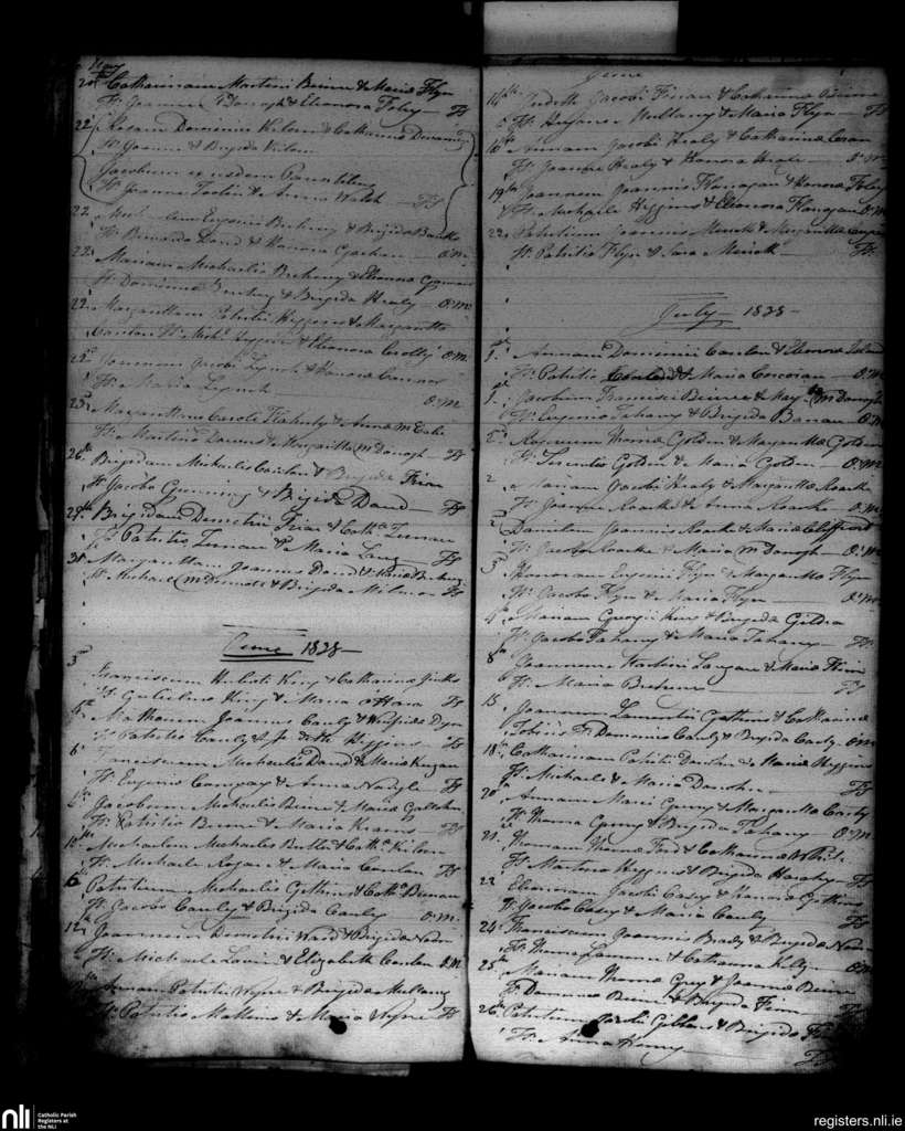 Taunagh; County of Sligo; Diocese of Elphin. Baptisms, May 1838 to July 1838