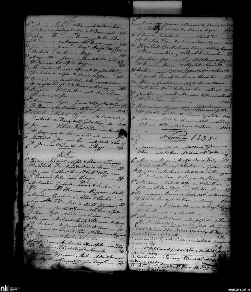 Taunagh; County of Sligo; Diocese of Elphin. Baptisms, Sep. 1838 to Nov. 1838