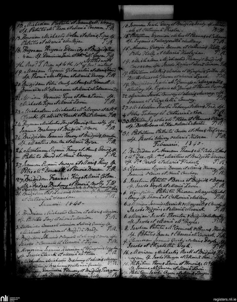 Taunagh; County of Sligo; Diocese of Elphin. Baptisms, Dec. 1839 to Feb. 1840