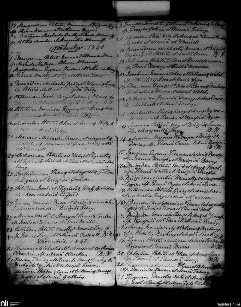 Taunagh; County of Sligo; Diocese of Elphin. Baptisms, Oct. 1840 to Dec. 1840