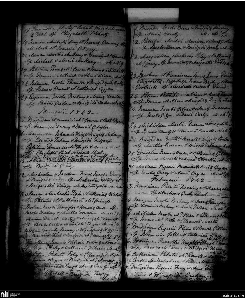 Taunagh; County of Sligo; Diocese of Elphin. Baptisms, Dec. 1841 to Feb. 1842