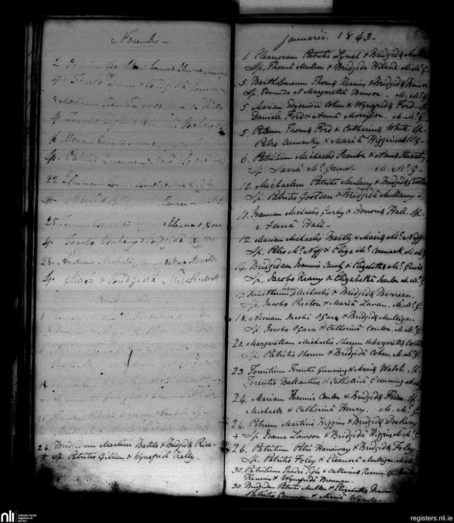 Taunagh; County of Sligo; Diocese of Elphin. Baptisms, Nov. 1842 to Jan. 1843