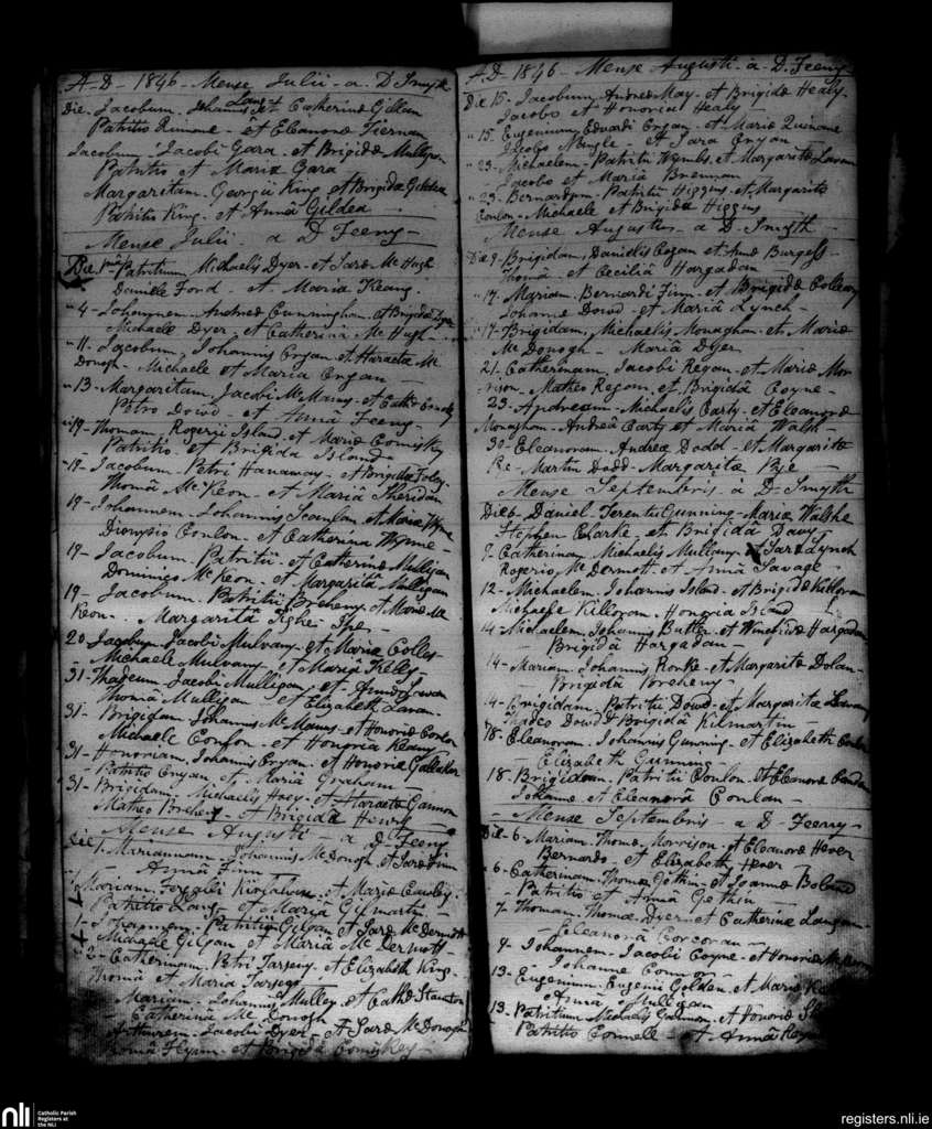 Taunagh; County of Sligo; Diocese of Elphin. Baptisms, July 1846 to Sep. 1846