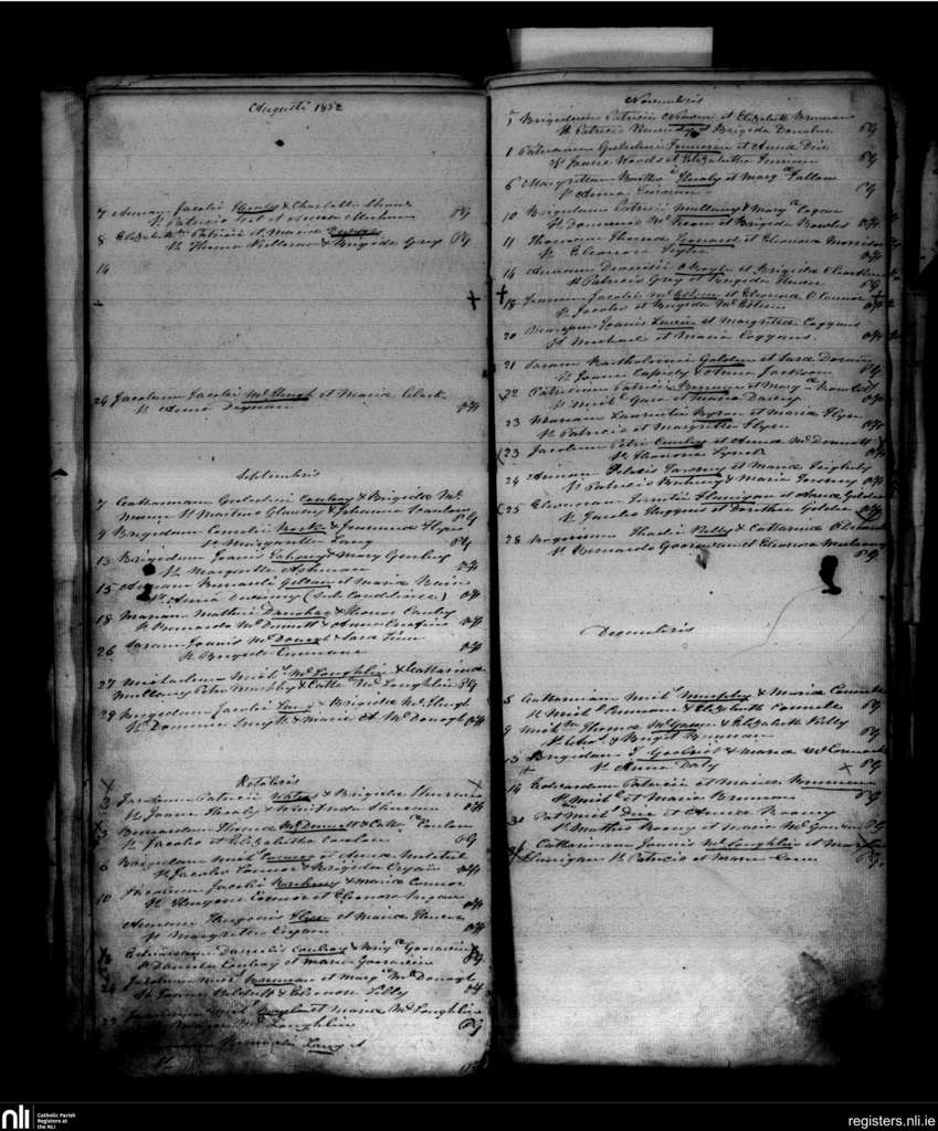 Taunagh; County of Sligo; Diocese of Elphin. Baptisms, Aug. 1852 to Dec. 1852