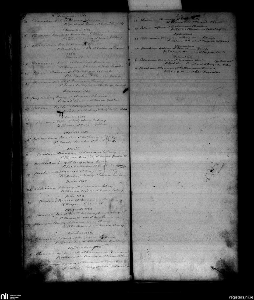 Taunagh; County of Sligo; Diocese of Elphin. Marriages, Nov. 1861 to Dec. 1862