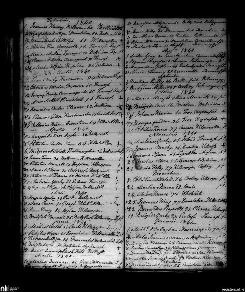 Taunagh; County of Sligo; Diocese of Elphin. Deaths, Feb. 1840 to Feb. 1841