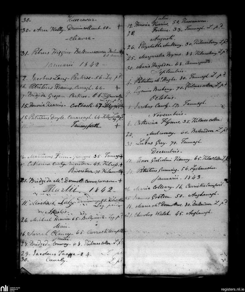 Taunagh; County of Sligo; Diocese of Elphin. Deaths, Dec. 1841 to Jan. 1843