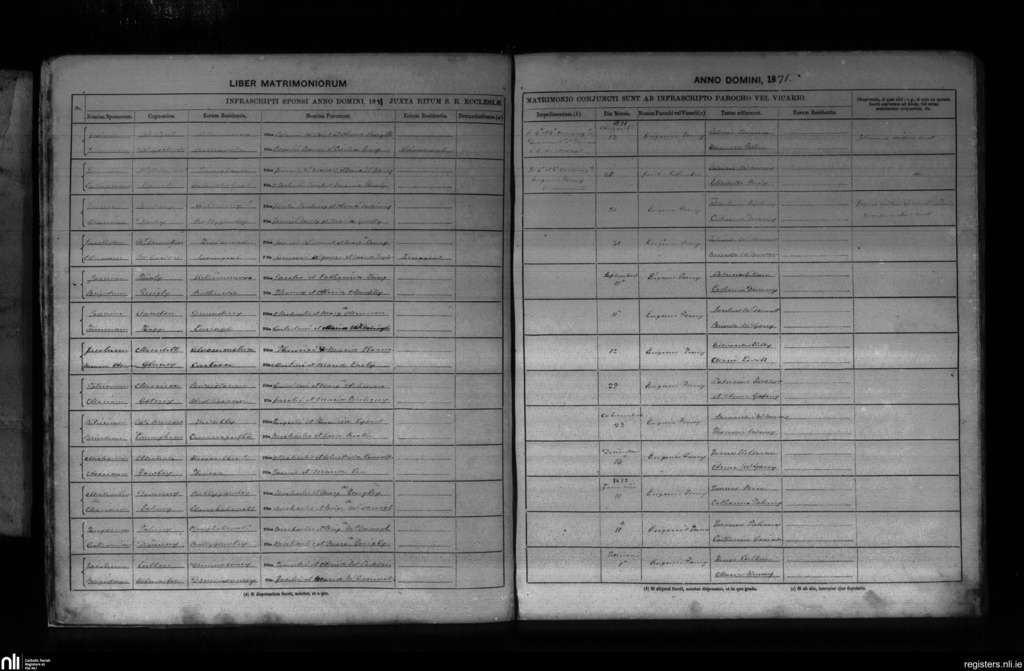 Taunagh; County of Sligo; Diocese of Elphin. Marriages, Aug. 1871 to Feb. 1872
