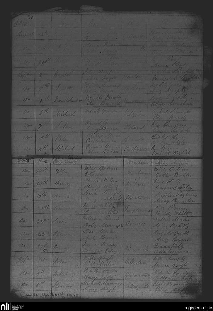 Adamstown; County of Wexford; Diocese of Ferns. Baptisms, Aug. 1838 to Oct. 1838