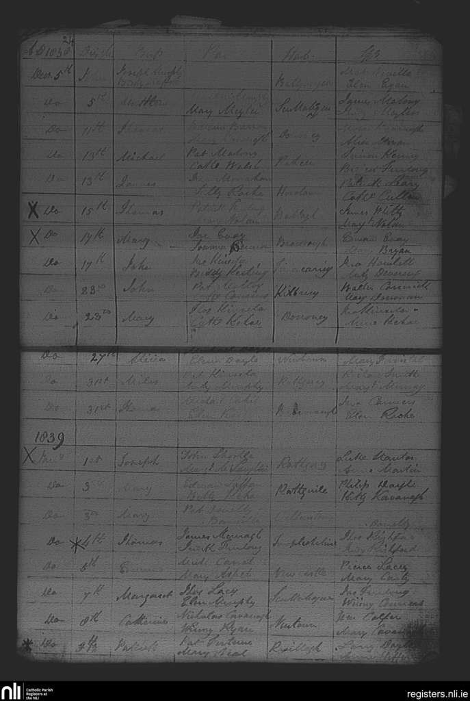 Adamstown; County of Wexford; Diocese of Ferns. Baptisms, Dec. 1838 to Jan. 1839