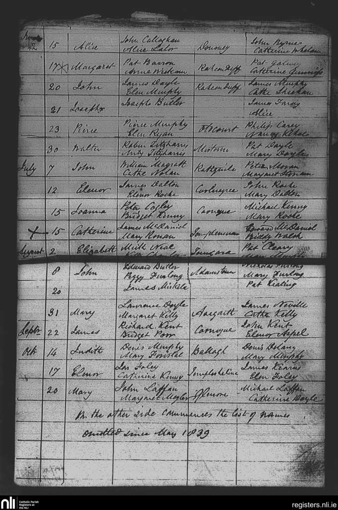 Adamstown; County of Wexford; Diocese of Ferns. Baptisms, June 1840 to Oct. 1840