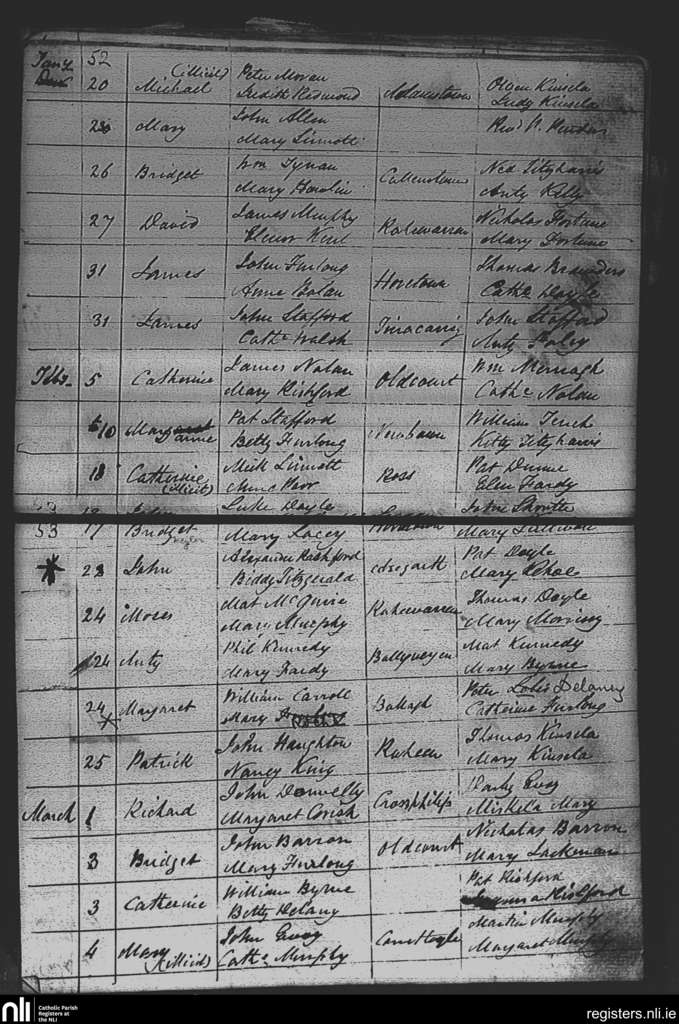 Adamstown; County of Wexford; Diocese of Ferns. Baptisms, Jan. 1841 to Mar. 1841