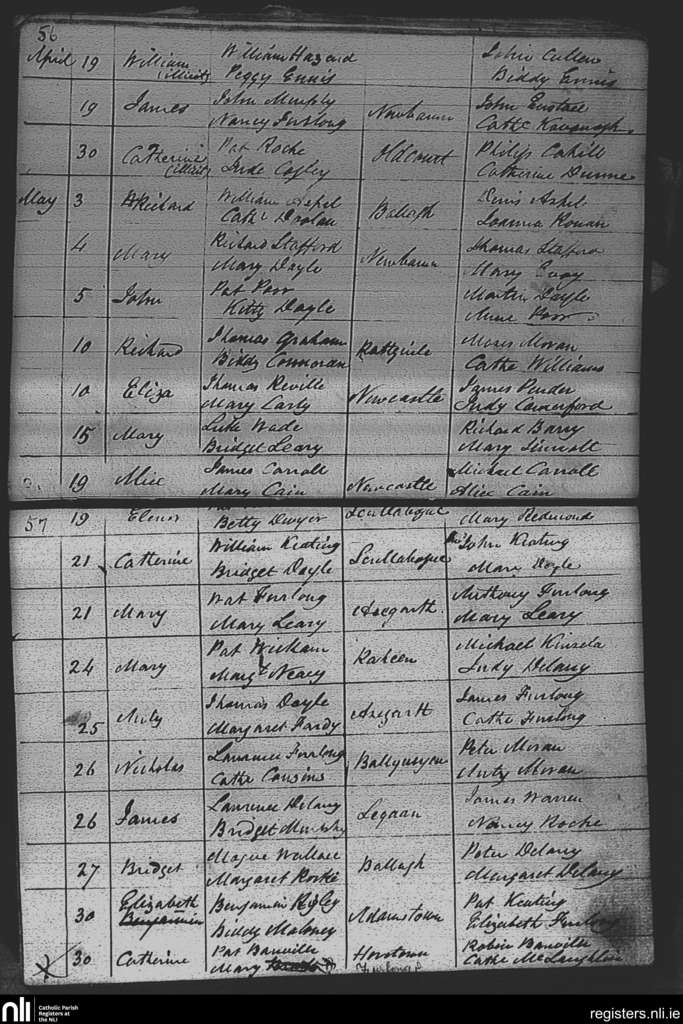 Adamstown; County of Wexford; Diocese of Ferns. Baptisms, Apr. 1841 to May 1841