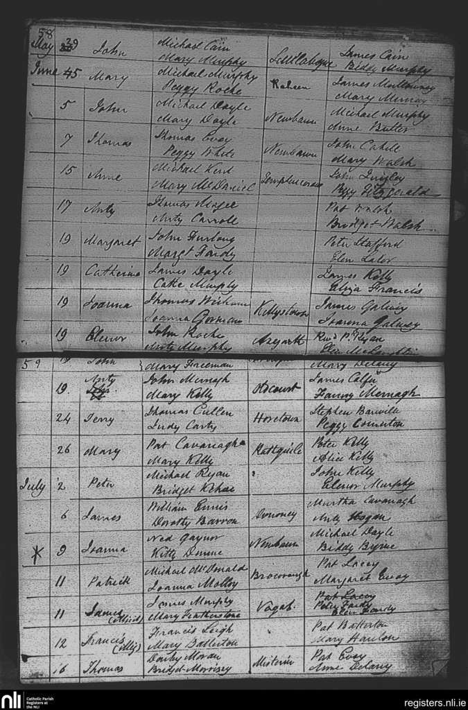 Adamstown; County of Wexford; Diocese of Ferns. Baptisms, May 1841 to July 1841