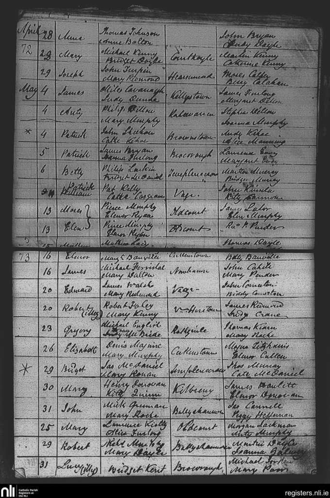 Adamstown; County of Wexford; Diocese of Ferns. Baptisms, Apr. 1842 to May 1842