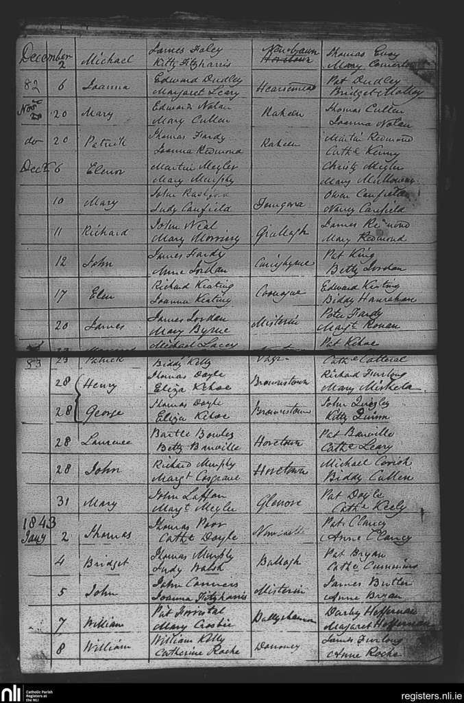Adamstown; County of Wexford; Diocese of Ferns. Baptisms, Nov. 1842 to Jan. 1843