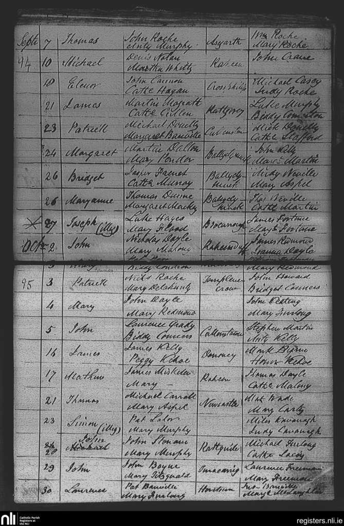 Adamstown; County of Wexford; Diocese of Ferns. Baptisms, Sep. 1843 to Oct. 1843