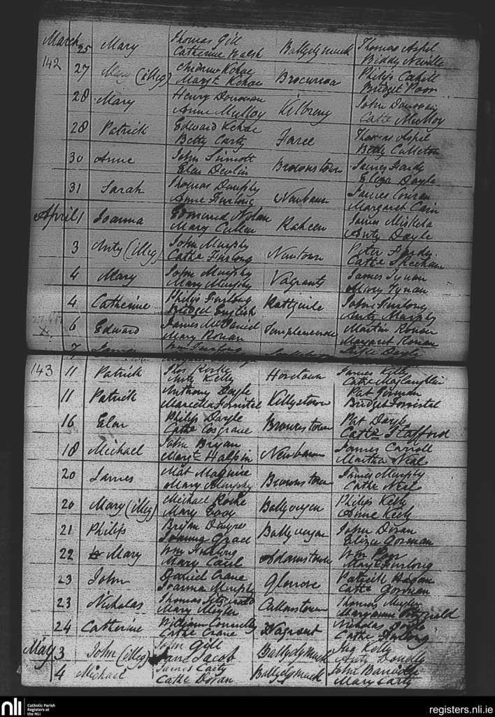 Adamstown; County of Wexford; Diocese of Ferns. Baptisms, Mar. 1847 to May 1847