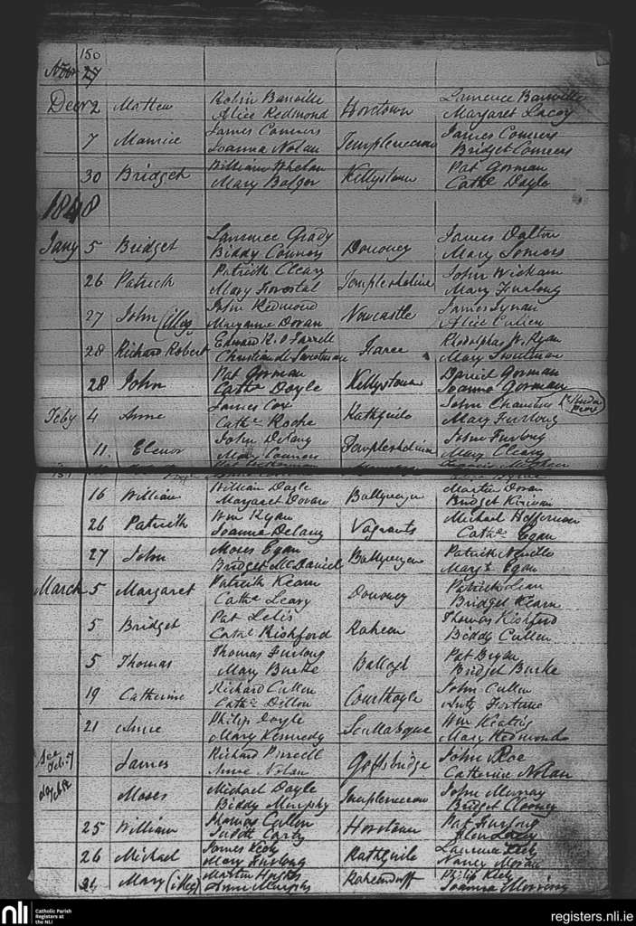Adamstown; County of Wexford; Diocese of Ferns. Baptisms, Dec. 1847 to Mar. 1848