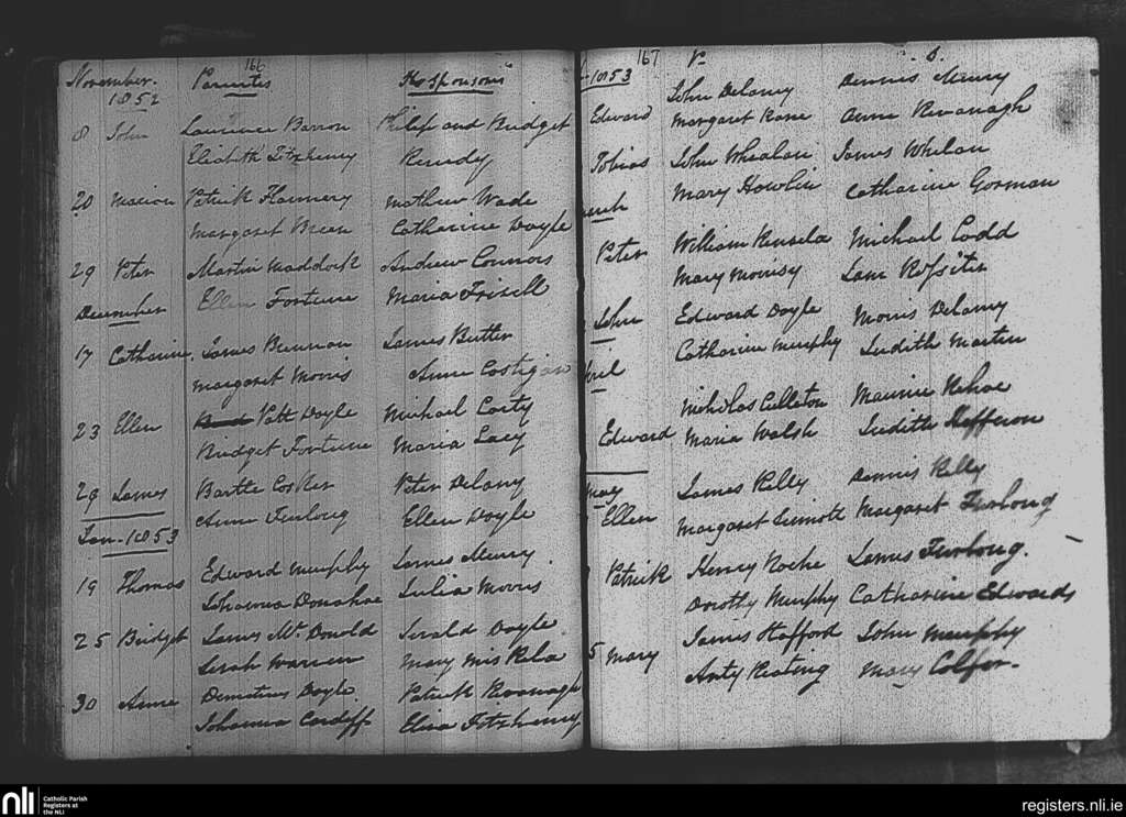 Adamstown; County of Wexford; Diocese of Ferns. Baptisms, Nov. 1852 to May 1853