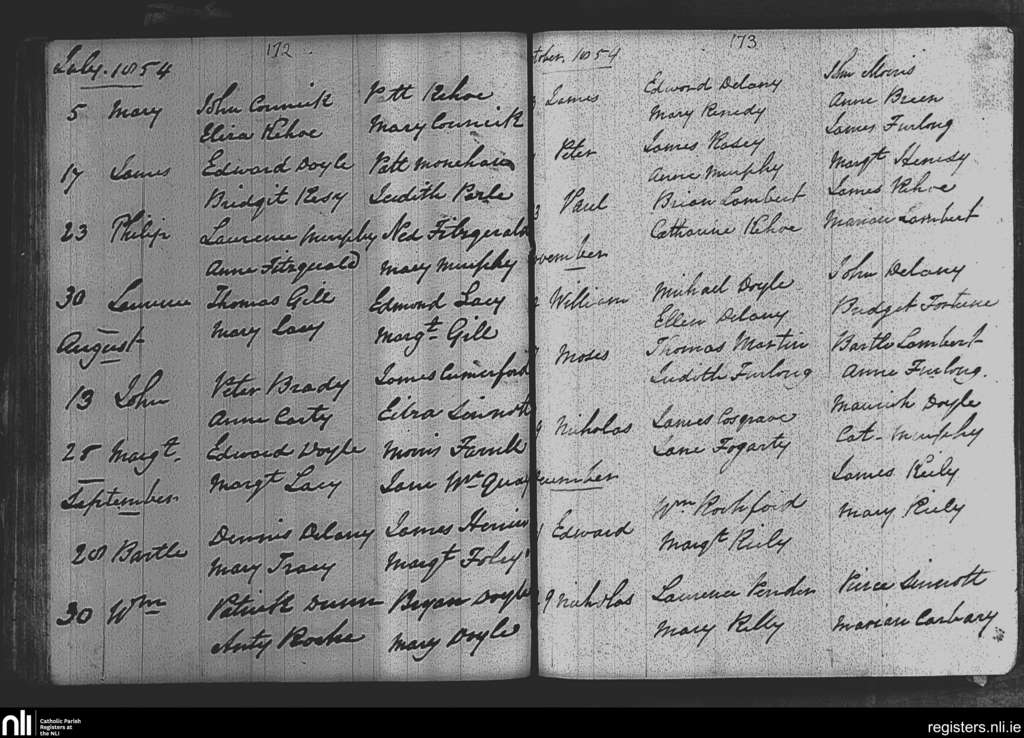 Adamstown; County of Wexford; Diocese of Ferns. Baptisms, July 1854 to Dec. 1854