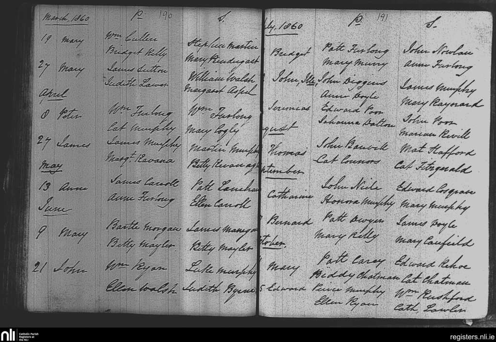 Adamstown; County of Wexford; Diocese of Ferns. Baptisms, Mar. 1860 to Oct. 1860