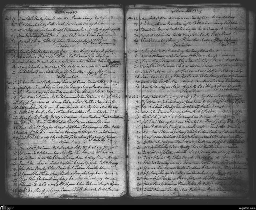 Schull West; County of Cork; Diocese of Cork and Ross. Baptisms, Oct. 1829 to Dec. 1829