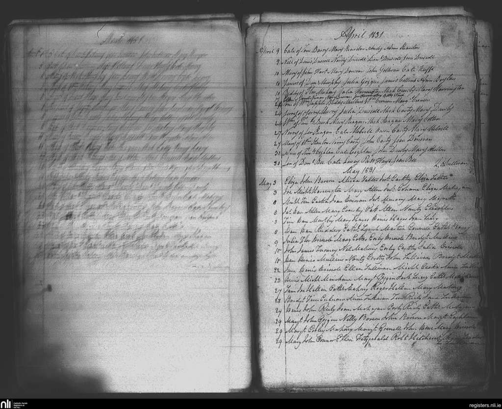 Schull West; County of Cork; Diocese of Cork and Ross. Baptisms, Mar. 1831 to May 1831