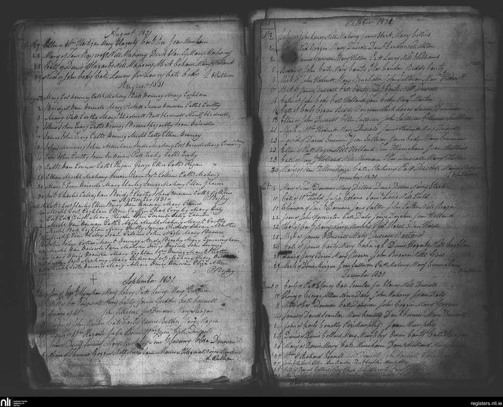 Schull West; County of Cork; Diocese of Cork and Ross. Baptisms, Aug. 1831 to Dec. 1831