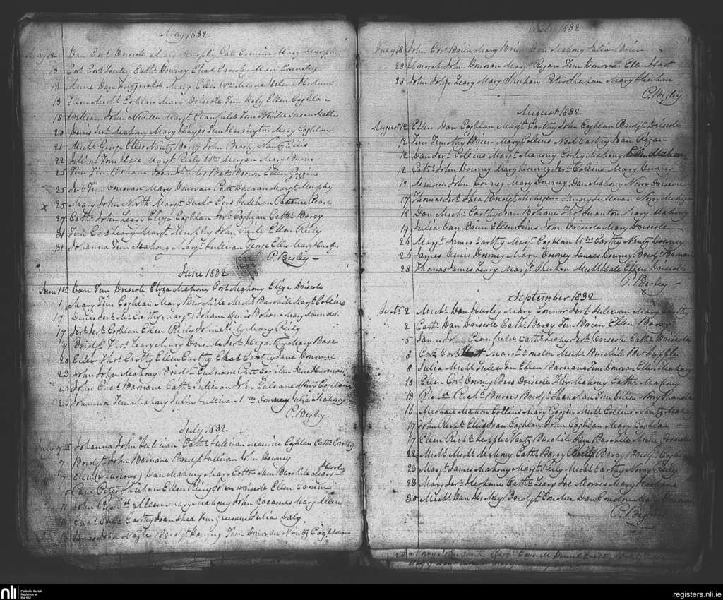Schull West; County of Cork; Diocese of Cork and Ross. Baptisms, May 1832 to Sep. 1832