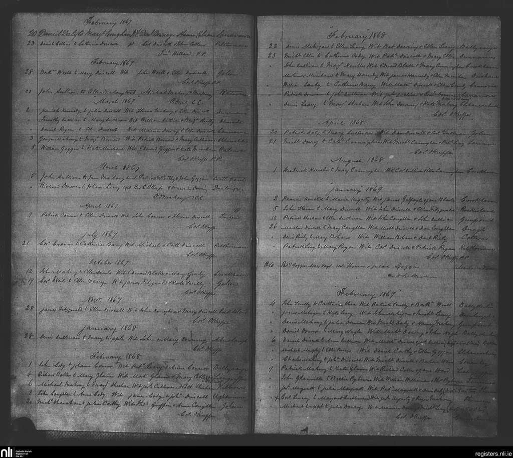 Schull West; County of Cork; Diocese of Cork and Ross. Marriages, Feb. 1867 to Feb. 1869