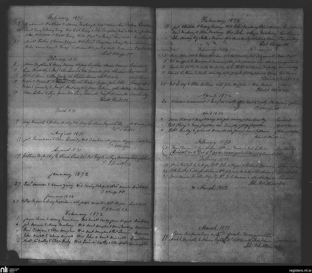 Schull West; County of Cork; Diocese of Cork and Ross. Marriages, Feb. 1871 to Mar. 1873