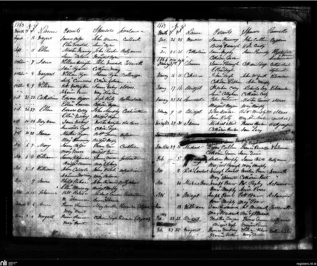 Old Ross; County of Wexford; Diocese of Ferns. Baptisms, Aug. 1863 to Nov. 1864