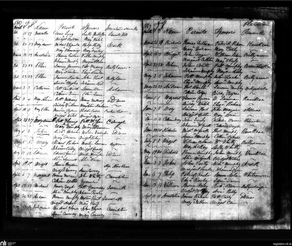 Old Ross; County of Wexford; Diocese of Ferns. Baptisms, Feb. 1867 to Aug. 1867
