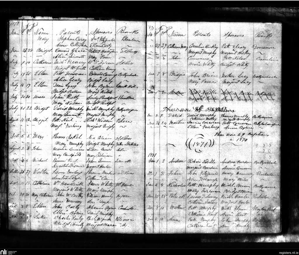 Old Ross; County of Wexford; Diocese of Ferns. Baptisms, June 1870 to Dec. 1871