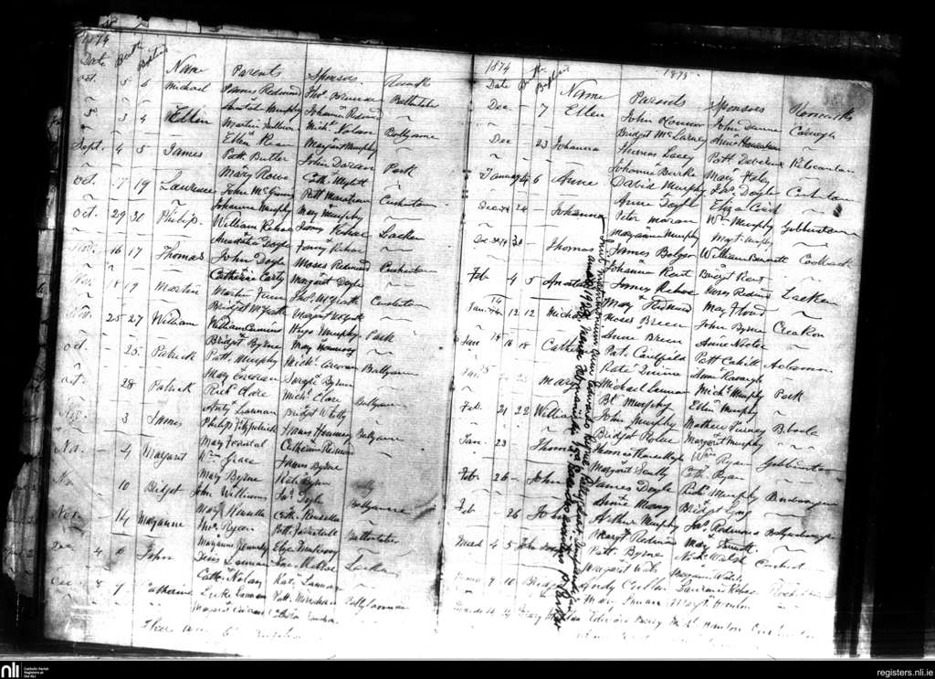 Old Ross; County of Wexford; Diocese of Ferns. Baptisms, Sep. 1874 to Mar. 1875
