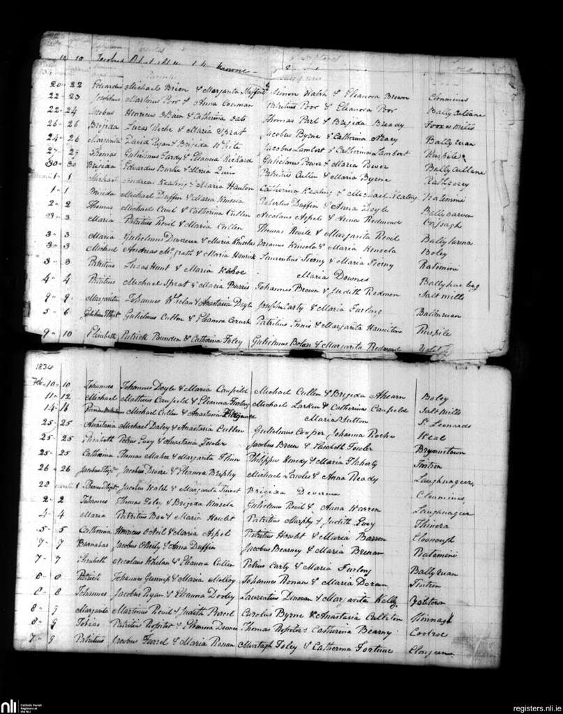 Ballycullane; County of Wexford; Diocese of Ferns. Baptisms, Jan. 1834 to Mar. 1834