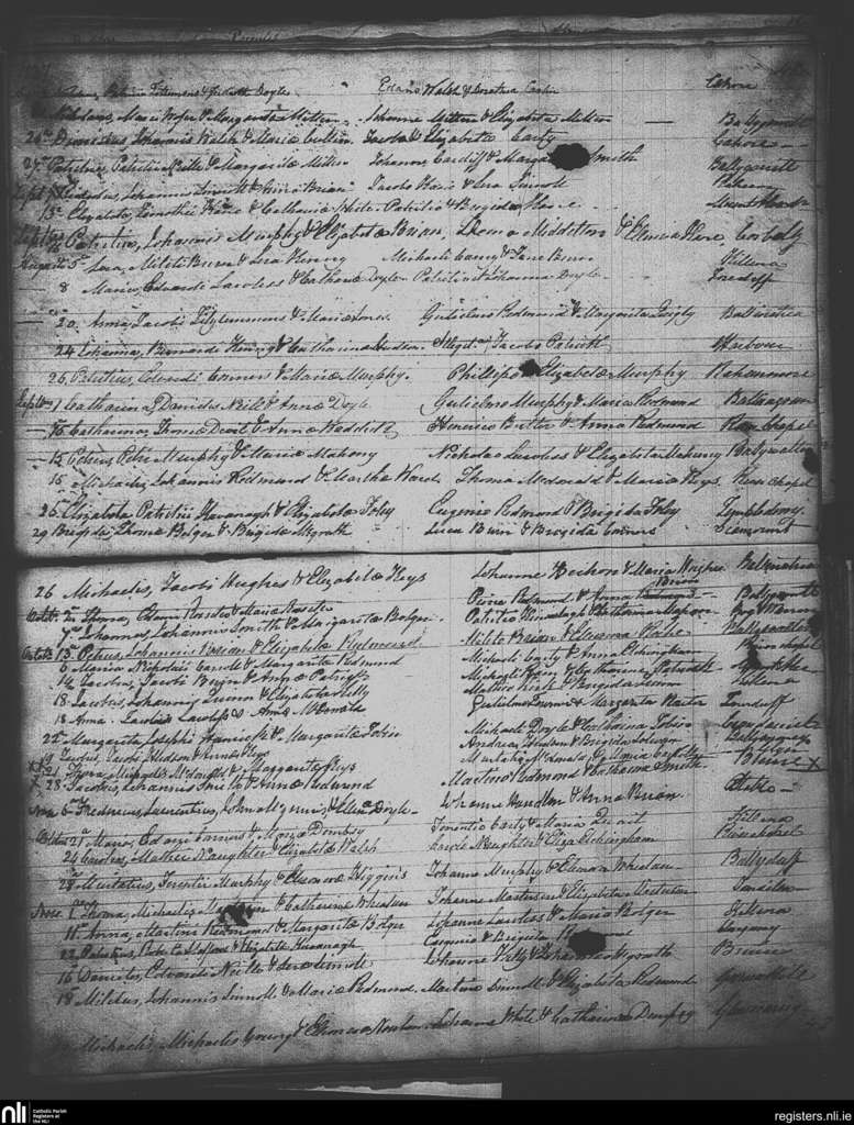 Ballygarrett; County of Wexford; Diocese of Ferns. Baptisms, Aug. 1837 to Nov. 1837