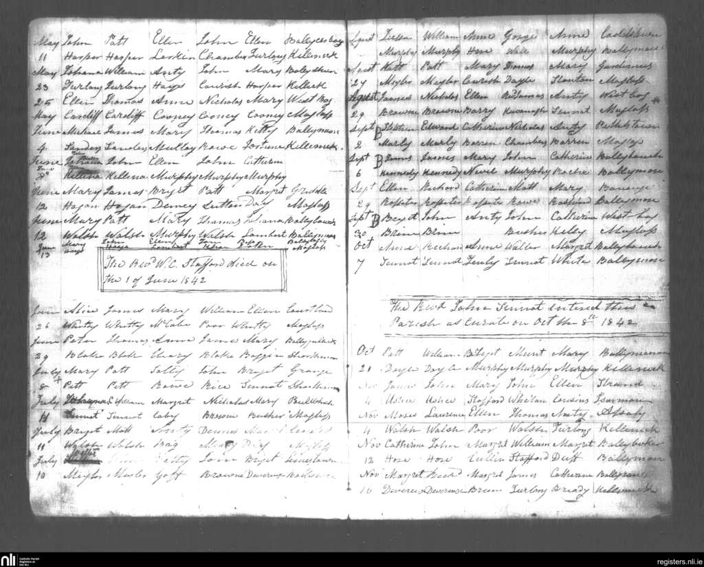 Ballymore; County of Wexford; Diocese of Ferns. Baptisms, May 1842 to Nov. 1842