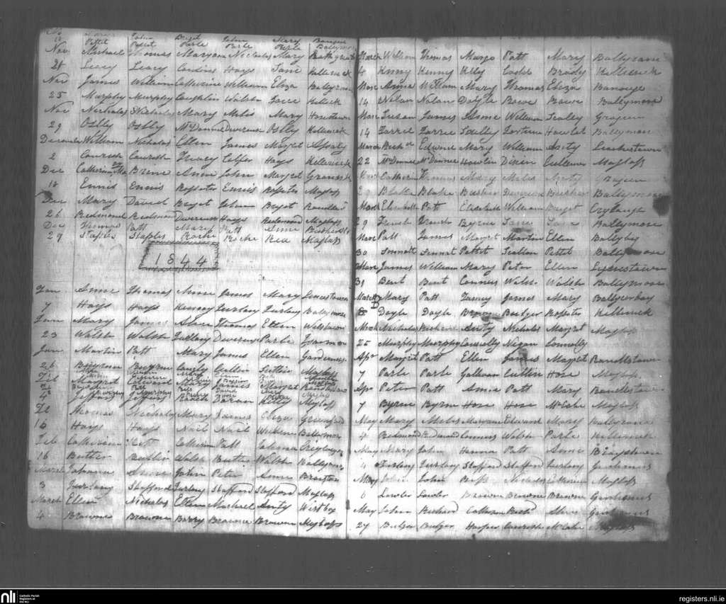 Ballymore; County of Wexford; Diocese of Ferns. Baptisms, Nov. 1843 to May 1844