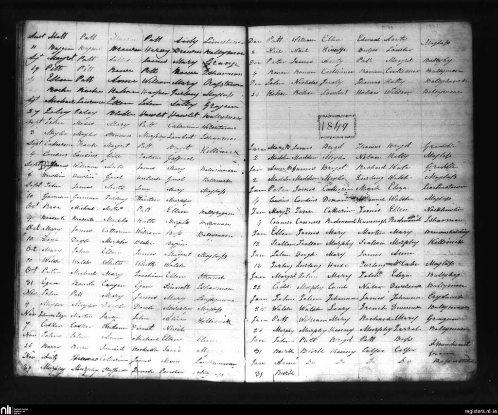 Ballymore; County of Wexford; Diocese of Ferns. Baptisms, Aug. 1848 to Jan. 1849