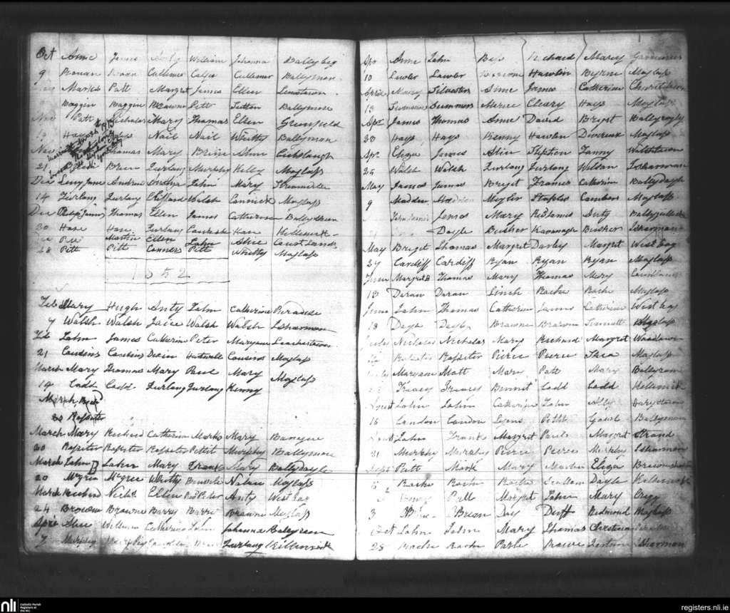 Ballymore; County of Wexford; Diocese of Ferns. Baptisms, Oct. 1851 to Oct. 1852