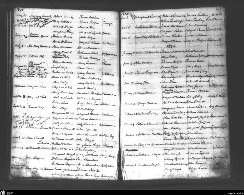 Ballymore; County of Wexford; Diocese of Ferns. Baptisms, May 1875 to Mar. 1876