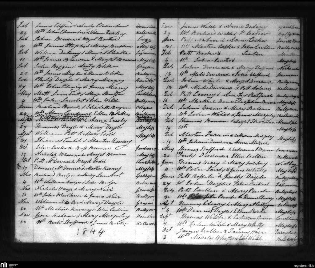 Ballymore; County of Wexford; Diocese of Ferns. Marriages, Feb. 1843 to Oct. 1844